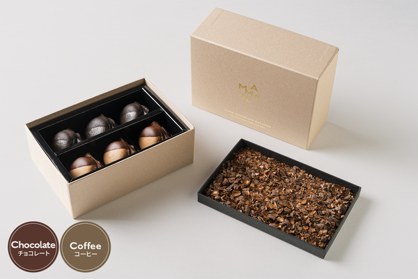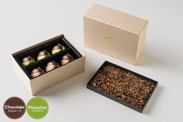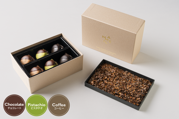 チョコレート2個、ピスタチオ2個、コーヒー2個が入ったセット